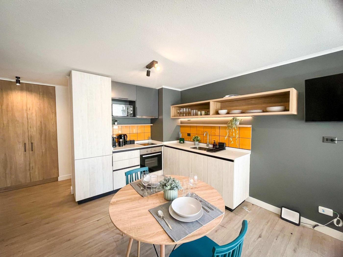 Apartment. The apartment features a private entrance and a tea and coffee maker, as well as a private bathroom boasting a hairdryer. The fully equipped kitchen has a stovetop, a refrigerator, kitchenware and an oven. This apartment offers heating, a TV and city views. The unit has 1 bed.